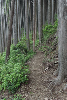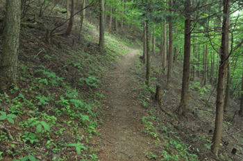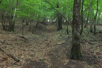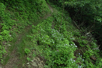ふと、木々の連なりが途絶え下草が芳醇な場所があった。 水場も近いのだろうか?より一層沢の音を感じる場所だった。