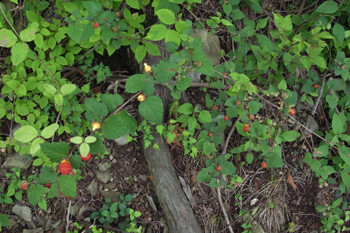 まわりにいっぱい赤い花が咲いていた・・と思ったら野いちごだった・・。すごい数だ。