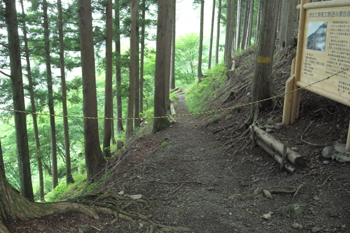 立て看板によると、ニホンジカが異常繁殖し下草を食べまくったので、山が崩壊しちゃった・・・そうです。自然植生の喪失で森林の裸山化が進む深刻な状況にあるそうです。