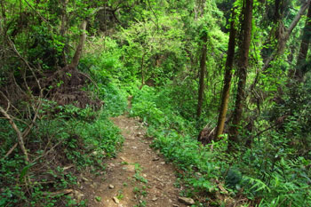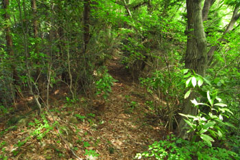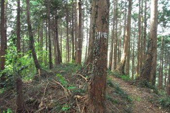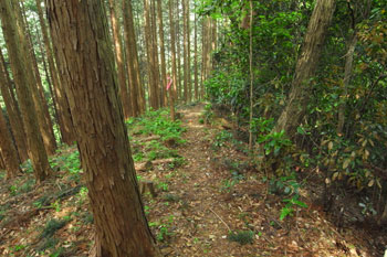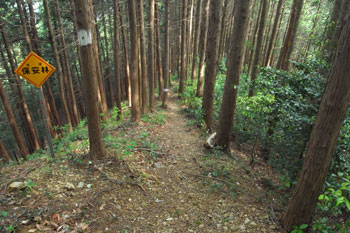 落ち葉が深く積もる、急な坂道(もはや道では無い)を下ると、登山道?に合流した。