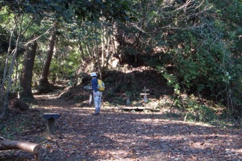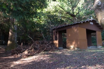 八王子城山の最高展望地点(仮称)を通過すると、右手に東屋が現れます。