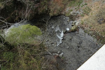 しばらくアスファルトの道を行くと、左手に頼りなさそうな橋が見えてきます。