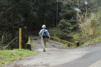 『ホタル通り』に入るとすこし民家がありますが、じきに林道は森の中へと入って行きます。すこし空気がひんやりとしていて、心なしか寒く感じました。