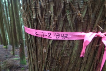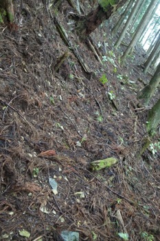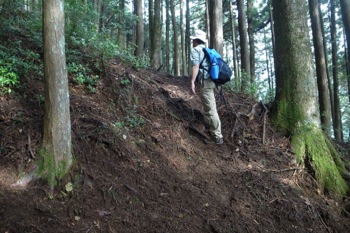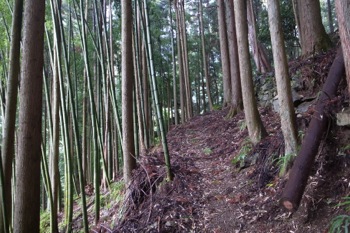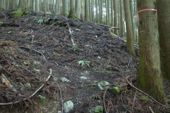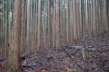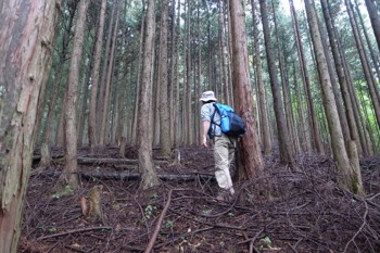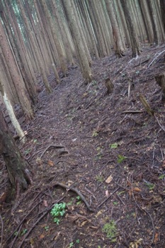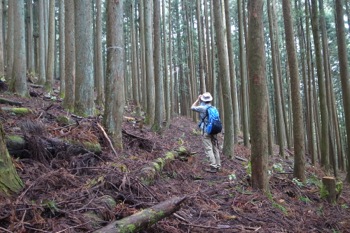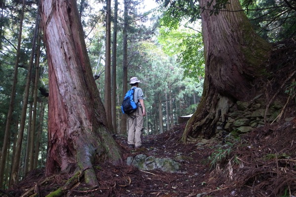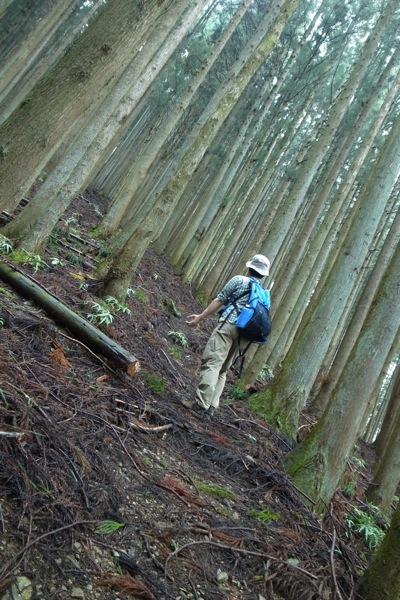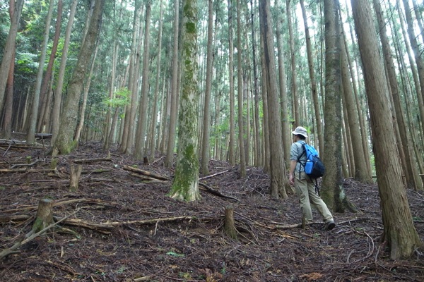この辺りは杉の植林です。かなりよく育っていて、なかなかの太さです。