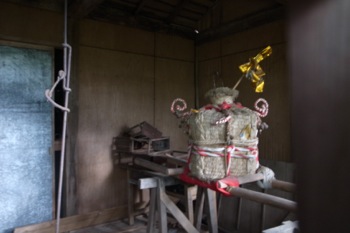 中を覗いてみると、小さい神輿のようなものが。。
