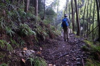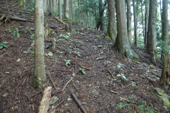 さて、この道が平になってくる辺りから、再び道を外して尾根を辿ります。