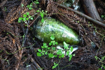 瓶の中で育っている苔。