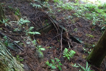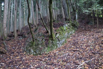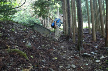 こんな山の中にお墓が昔は有ったんでしょうね、でも今は敷地だけで墓石はわずかです。