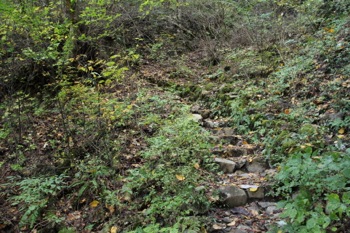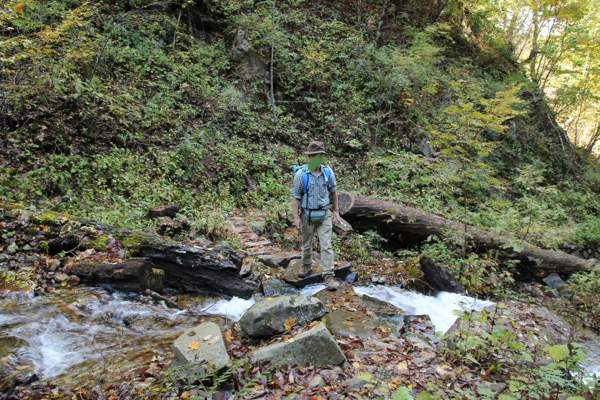 そして、川を渡ったあたりから登山道は斜面の上へ折り返すように伸びていて、沢から遠ざかります。