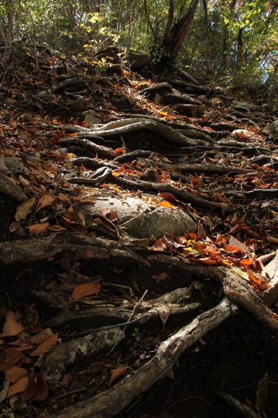 根っこが剥き出しになっていたり、岩がゴロゴロしていたりします。