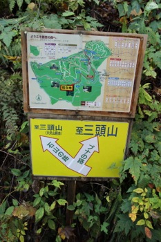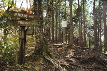 三頭の滝の上部を過ぎて進むとその先に分岐が出てきます。