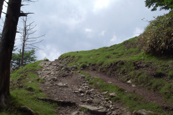 七ツ石山から、雲取山方面へ下る。途中露出した岩が印象的だった。