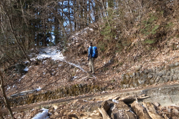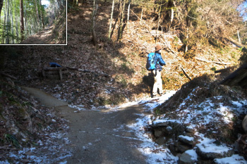 この舗装路も突っ切って、登山道へ入ってゆきます。