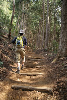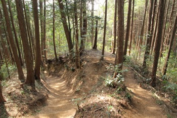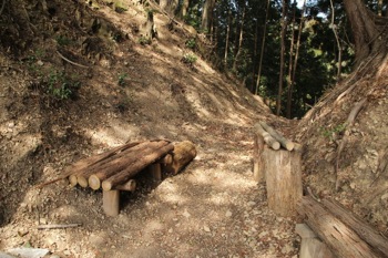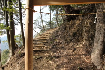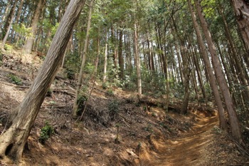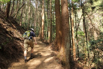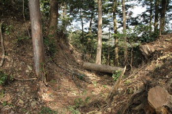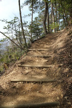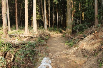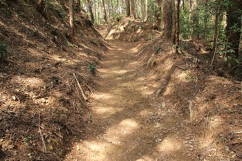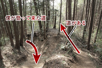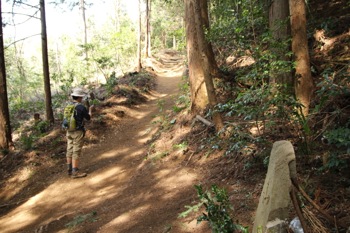 山の神を過ぎて一度山道を折り返すと、ザレ気味の急坂。