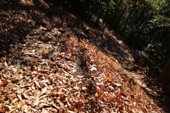 一部落ち葉が堆積しているので、良く滑ります。