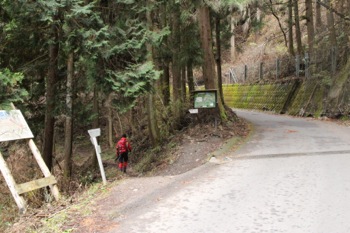 林道に入ってすぐ、左手に笹尾根への登り口。