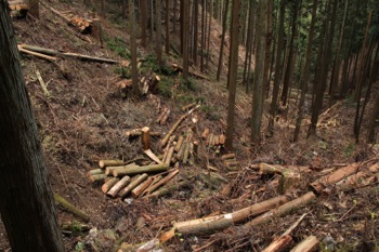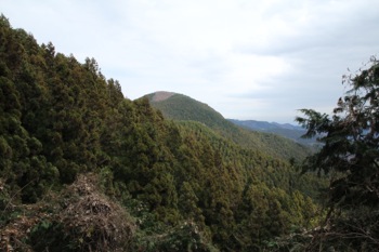 歩いていたら、林道のスキマから遠くの山が見えました。