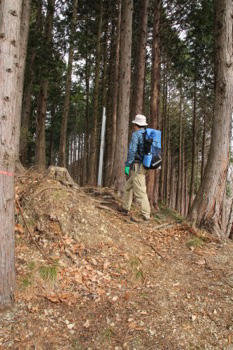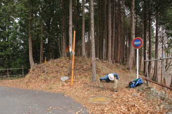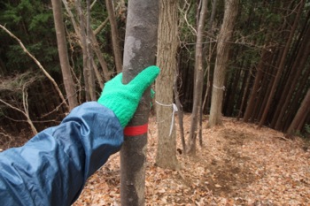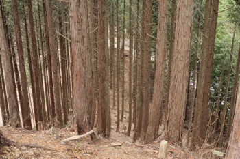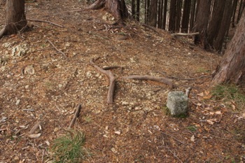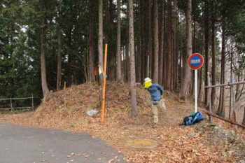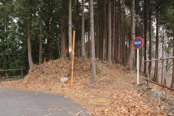 『林道醍醐線』をほどなく進むと、カーブミラーが設置された所が出てきて、