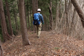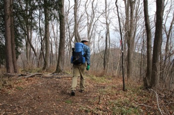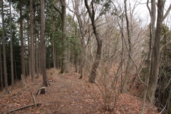 メシモリ岩山から下って行くと、すぐに平坦な尾根歩きに転じます、 鼻歌まじりに、道なりに歩いてゆきます。