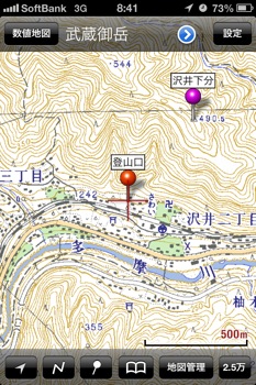 地図に印を付けてきました。たぶん『?』の場所の周辺に登山口があると思います。