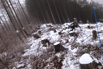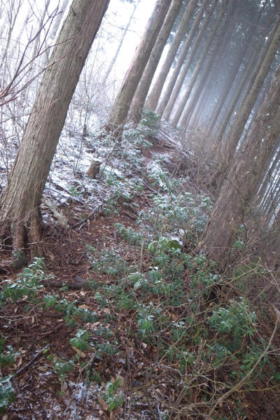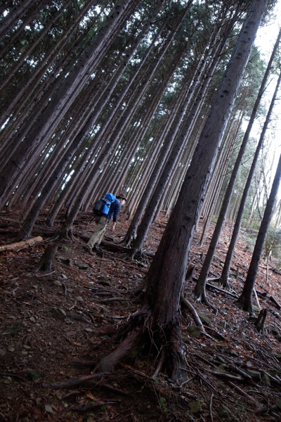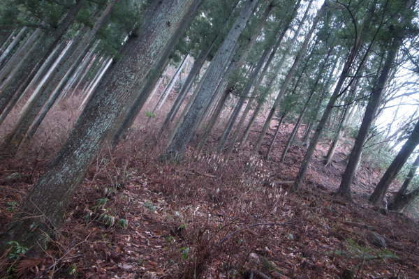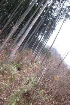 登ると杉の植林が見えてきた。