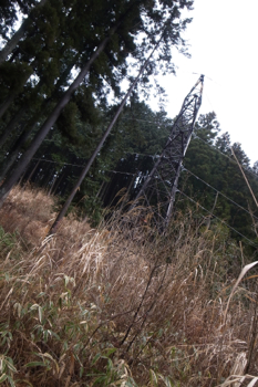 鉄塔を通過して針葉樹の森へ突入。
