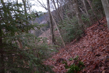 森の様子。(右手のぽっこりした部分が尾根の上)