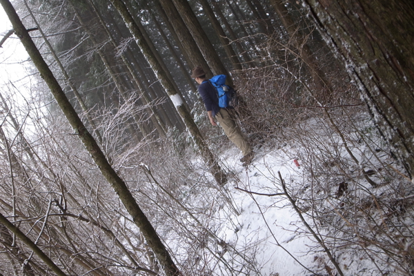 立ち止まるとズルズル・・とずり落ちそうな斜面だ。