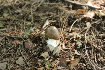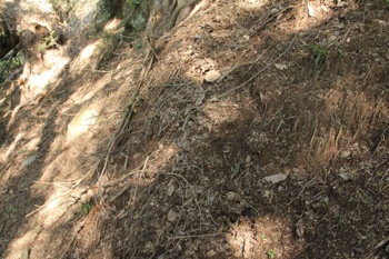 登りはじめだけど、尾根の右側をさまよいながら、尾根から大きくハズレないように上を目指しつつ、 ルートを探って登って行きます。