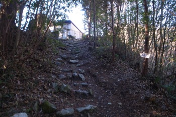 ここから石段を使って登ってゆきます。