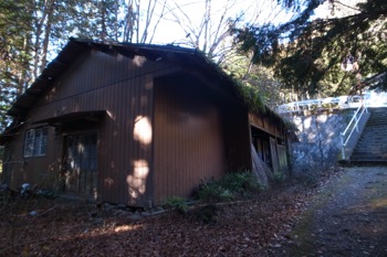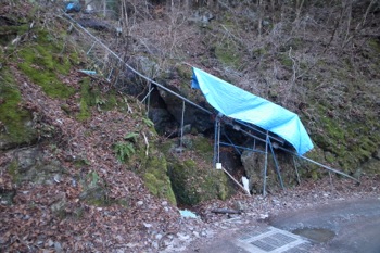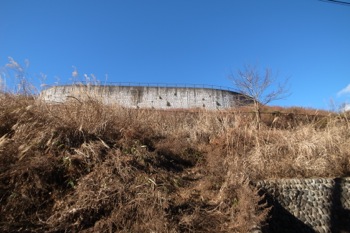 さらに歩いて行くと左側の上部に何か巨大な構造物が・・。