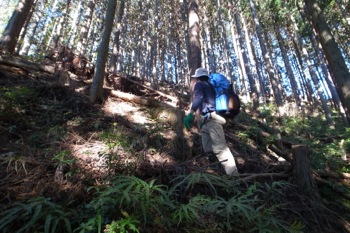 道があったので、山へ突入したのですが、我慢できずに斜面を直登する事にしました。