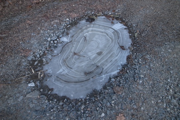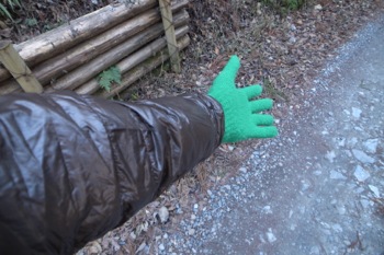 普通は山歩きをしながらダウンを着ると言う事は無いのですが、林道歩きは楽すぎて汗も出て来ません。 寒すぎるので羽織りました。