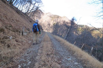 道を見落としていた事に気づいてない僕はそのまま林道を伝って歩いています。