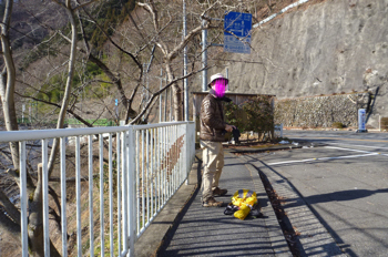 橋を渡った場所に駐車場がありますので、そこで軽く準備をしました。