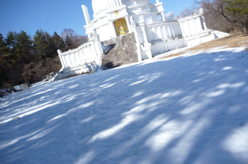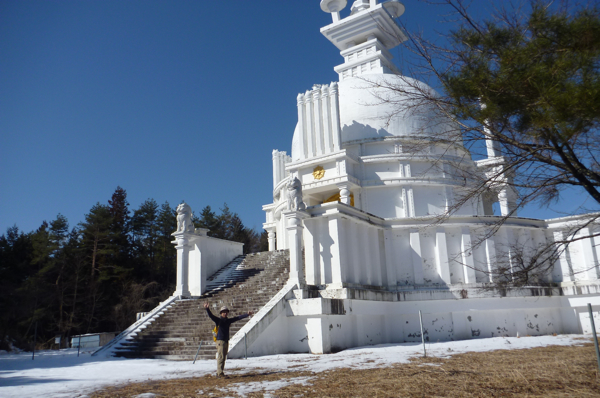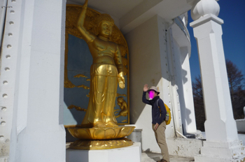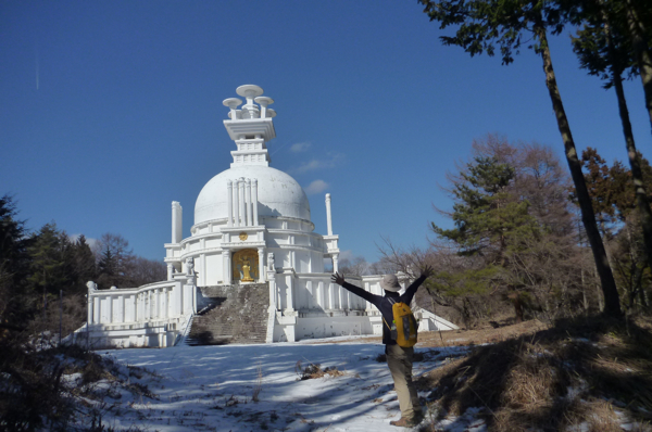 上まで登ると、仏舎利塔の周りをぐるっと回る事ができます。
