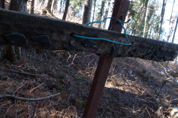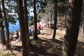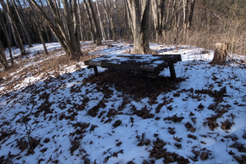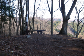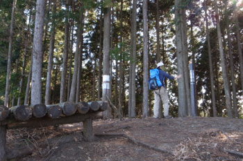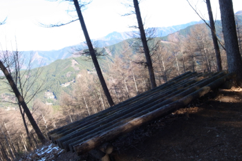 登山道からやや遠くベンチが見えた。