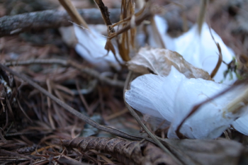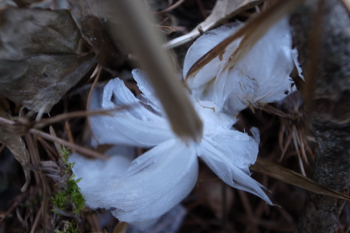 『シモバシラ』という植物は冬になると枯れてしまうのですが、根っこは冬でも生きているみたいで、 水を吸い上げつづけます。そのためその吸い上げた水がシモバシラになって、まるで氷の花が咲いているようになるらしいです。