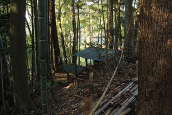 登って行くと〜。。おお(?)東屋が見えてきた〜。