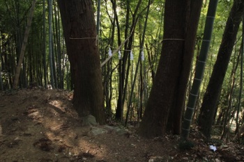木の間に縄が張ってある。