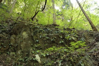 で、ふと滝の左側を見ると・・上部にロープが見えました。
