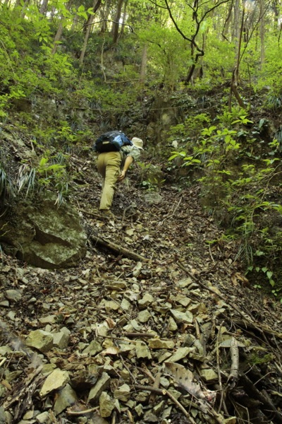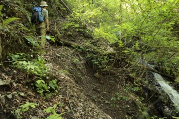 沢へ降りてくる(滝の上)