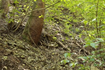 周辺を観察すると、右岸のさらに上部にロープがあるのを発見する。