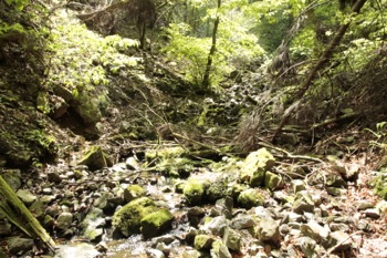いったん沢へ降りて、今度は左岸を前進する。