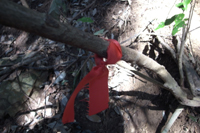 途中の赤テープ。