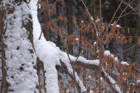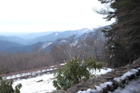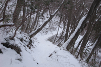 雪が積もった尾根道。