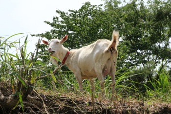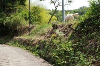 誰もいないのに、目線を感じると思ったら、なんとヤギが頭上にいました。
