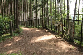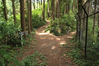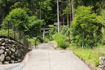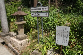 神社の右側に山へ入って行く路が伸びていたのでその道を使って山へ入ります。