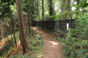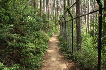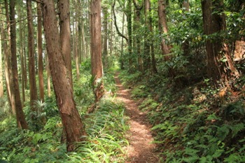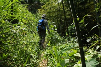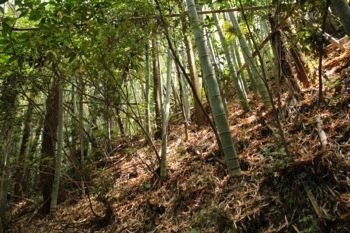 竹林を右手に、山の斜面を横断気味に進むと一度道を折り返し次は草が生い茂る道を進む。