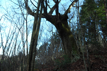 登りはじめてすぐに、木の根元部分に何かを発見。